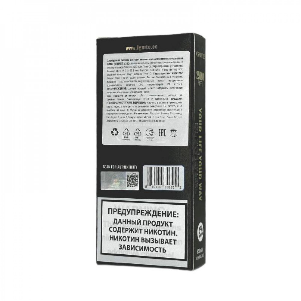• Электронная сигарета Ignite V250 Gold 25000 - Grape Ice (Виноград лёд)